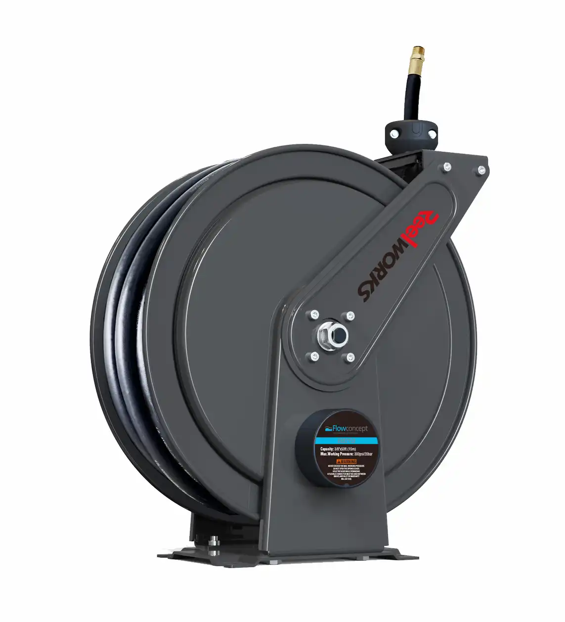 Kan anvendes til både luft og vand. Kompakt model med epoxy pulverlakeret overfladebehandling og styrearm med 4 retningsruller, som er justerbar i 9 forskellige positioner.Velegnet til brug i blandt andet industrien, landbruget og på autoværksteder.