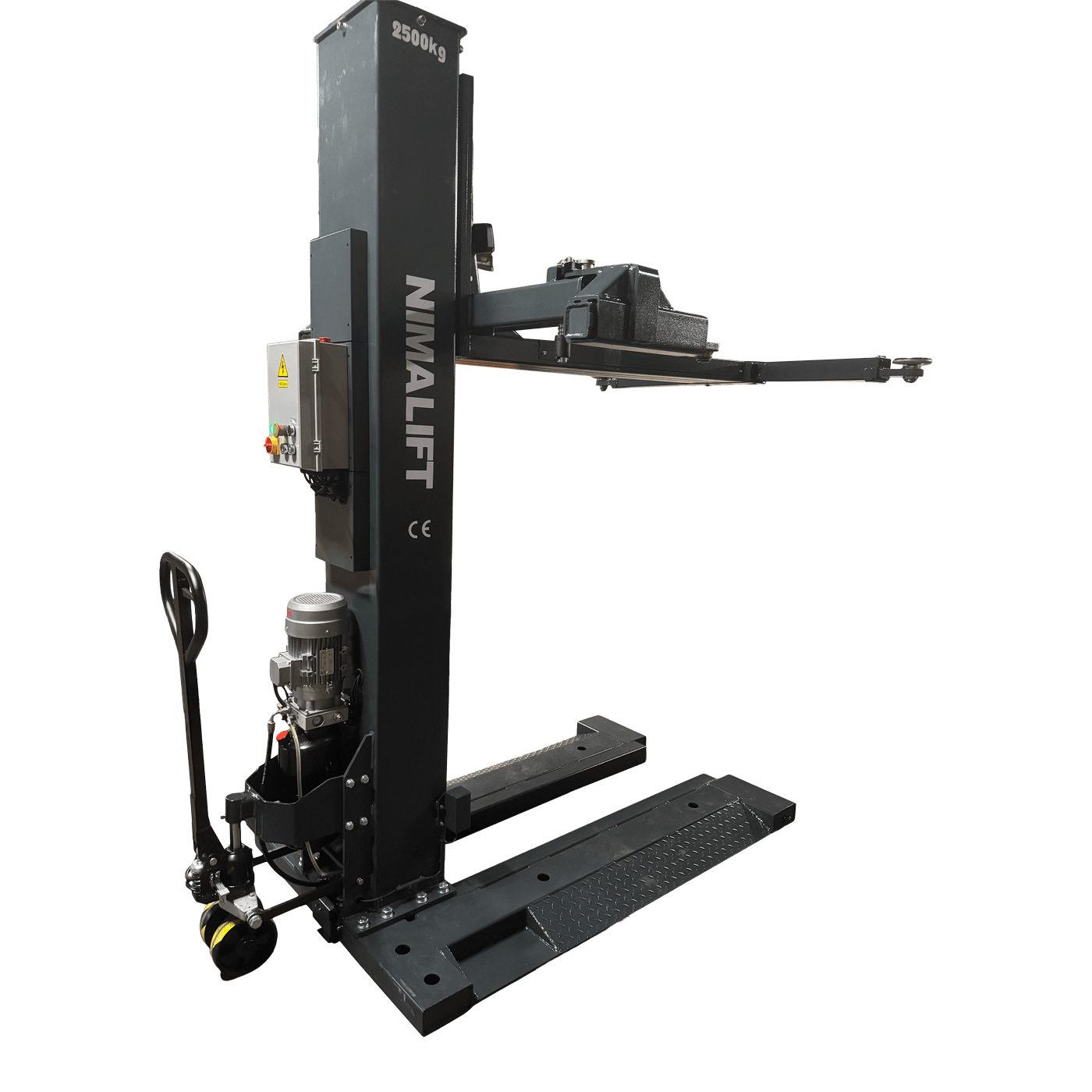 Denne 1-søjlede, flytbare autolift fra Nimalift er en praktisk og fleksibel løsning til værksteder, der har behov for ekstra kapacitet eller mere alsidige arbejdsstationer.