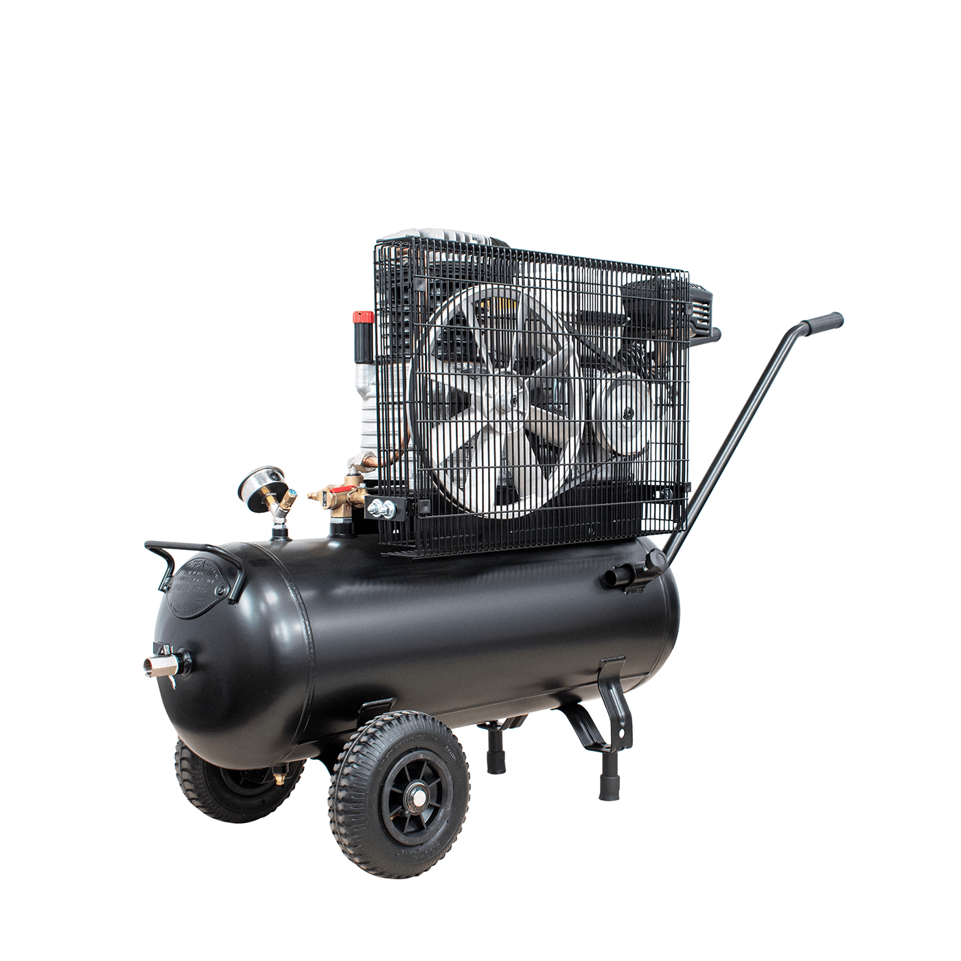 Her ser du KGK´s benzindrevne kompressor på 50 L. Denne kompressor er ideel til at have med på farten, hvor der ikke er adgang til strøm. Sådan en kompressor er meget populær hos entreprenører, da den er velegnet til at tage med på eksempelvis en byggeplads.