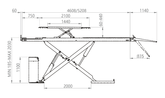 Maksimal løftehøjde: 2030 mm (Nedsænket i gulv 1845 mm)
