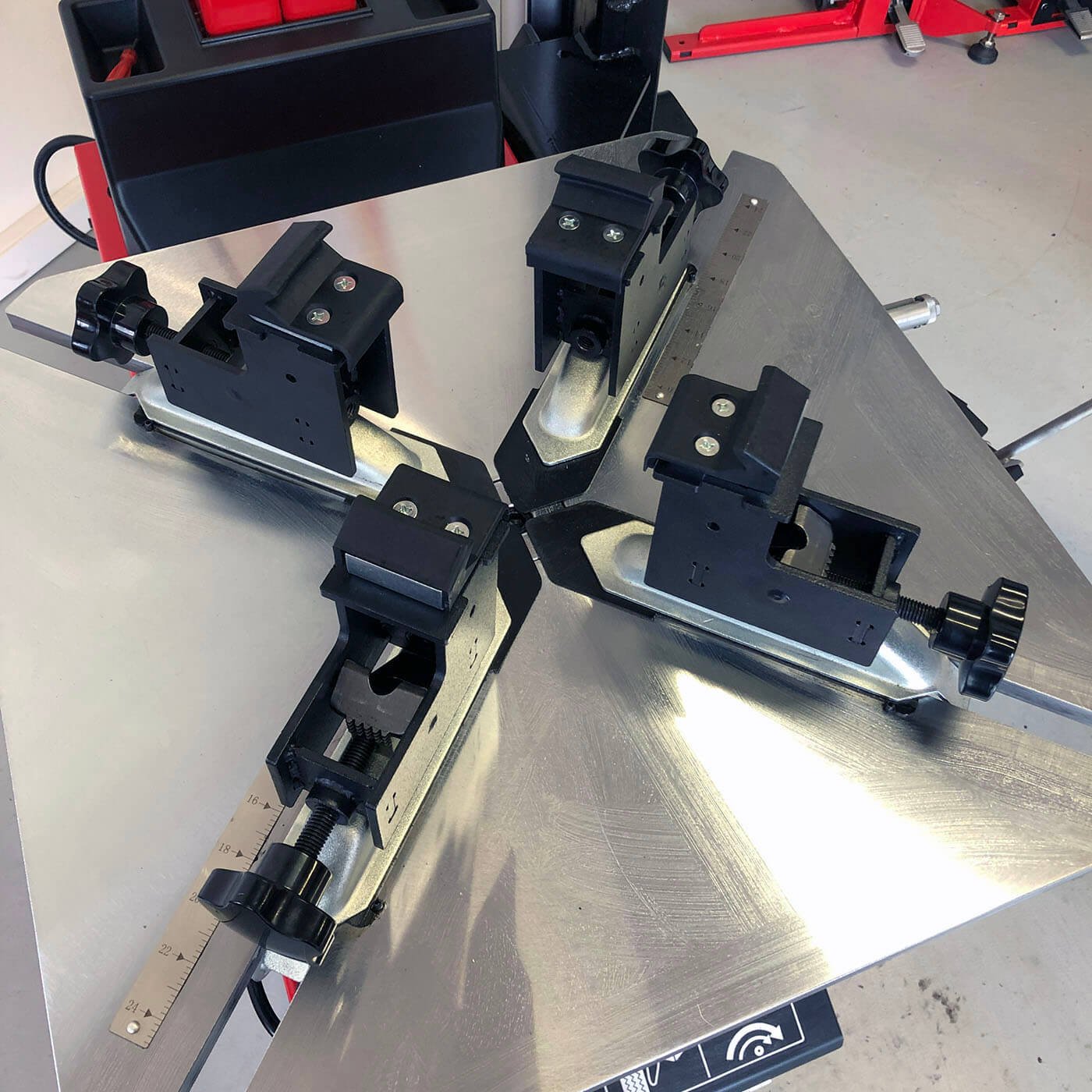 Sættet kan både forøge og formindske drejepladens grabbedimensioner med 3" i hver ende af skalaen. Det betyder at dækmaskinen med disse grabber kan få 3" længere ned og 3" længere op i fælgens diameter.