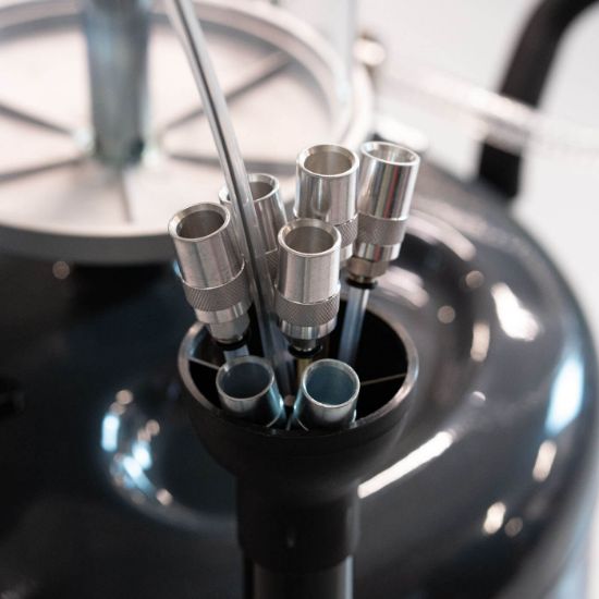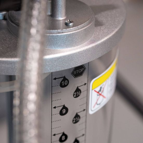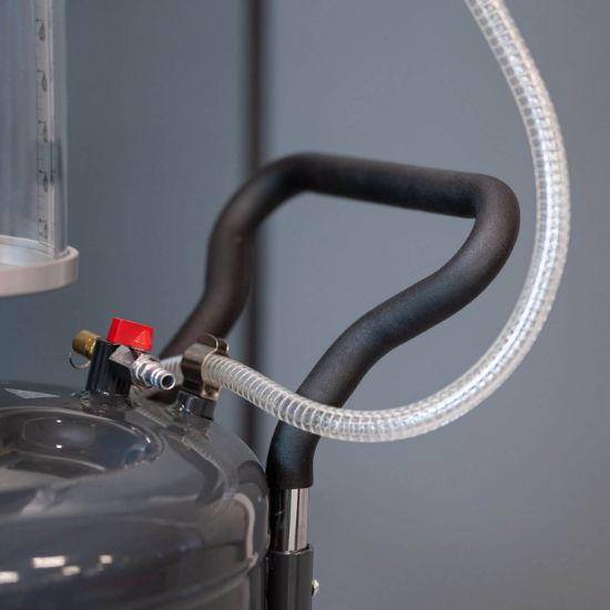 Leveres med skueglas, for at man nemt kan aflæse den aftappede mængde.